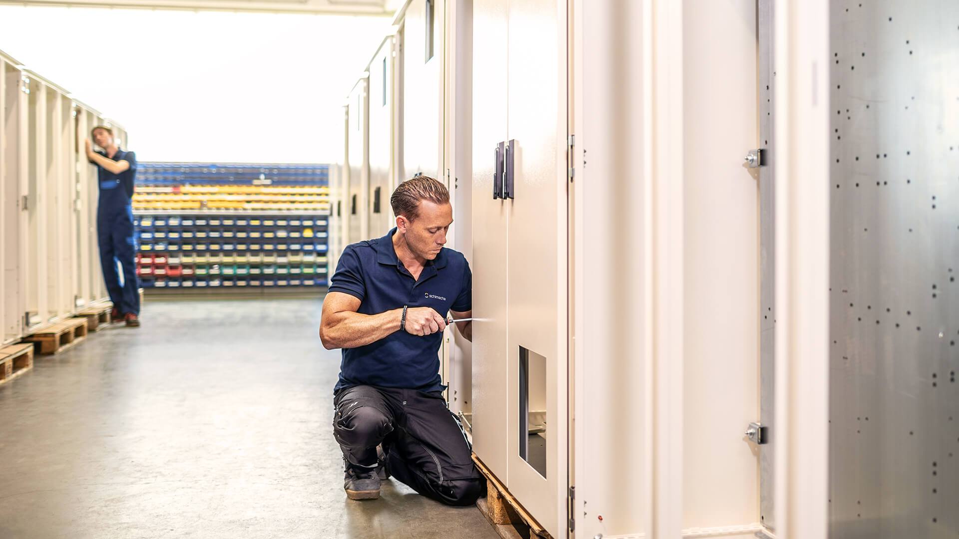 In unserer Endmontage setzen wir aus den einzelnen Blechteilen und Baugruppen fertige Produkte zusammen: Türen werden montiert, Bauteile verschraubt, Halterungen und Elemente passgenau angebracht.